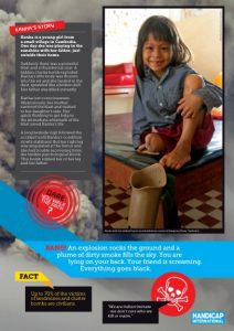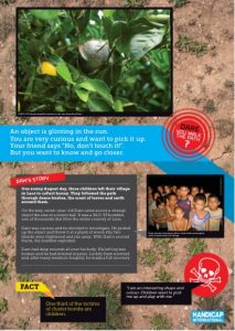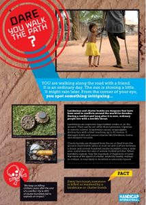 Handicap International approached me to work on an interactive exhibition and teaching resource about landmines and cluster bombs for UK school children aged 11-16 nationwide. With my background in participatory communication and creative writing, this was a very appealing and engaging project. Dare you walk the path? has been used widely across schools in the UK.
